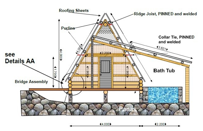 This Takeout might increase to 1,000 liters a day when the piggery is coming on and some of the tourist soak baths. Later we can simply build a second cistern and interconnect them, or we divide the takeout days by 2 to get the existing reservoirs capacity.