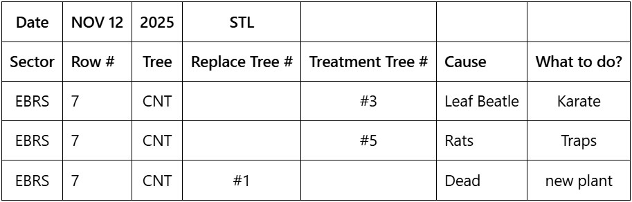 - This list will provide needed treatment and follow ups. This list is primarily for the team in the field to follow up with the SPECIFIC TREES: Investigate, treat, and monitor.