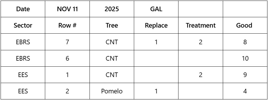 - EES R 2 Treatment for Pomelo #3, is specific; CAUSE: dead, do new plant