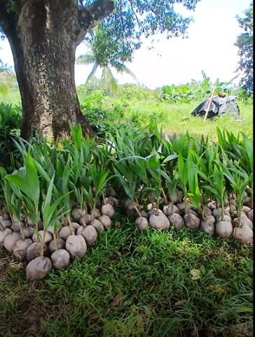 Hybrid coconuts have shorter, more manageable heights and wide spacing, allowing intercropping with bananas, cacao, papaya, or root crops—just like at Jessie’s Sunshine Farm.