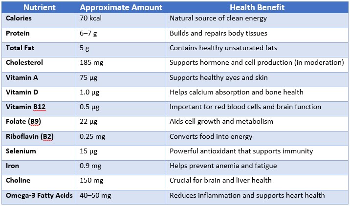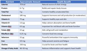 (Note: Nutrient values can vary slightly based on the hen’s diet and environment.)